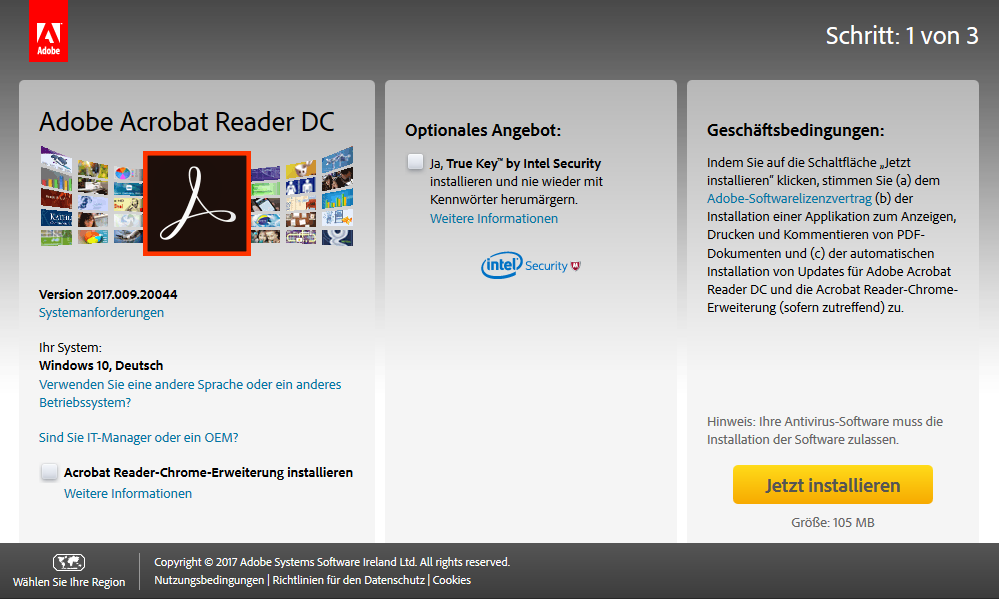 Die aktuelle Version des Acrobat Reader erhalten Sie unter https://get.adobe.com/reader/