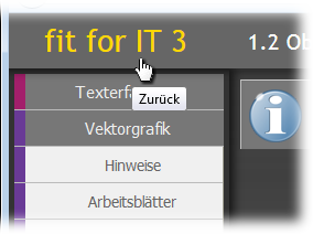 In jedem Menü ruft einen Mausklick auf das fit for IT 3 - Logo die nächsthöhere Menüebene auf.