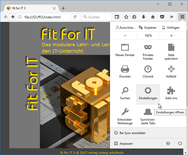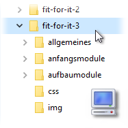 Kopieren Sie den kompletten Ordner „fit-for-it-3“ auf Ihren Computer (lokal oder im Netz).