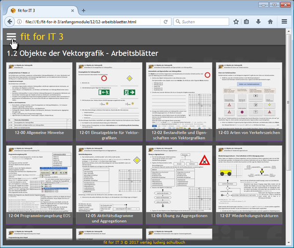 Beispiel: In Modul 12 (entspricht LP 1.2) finden Sie die Schüler-Arbeitsblätter im Ordner