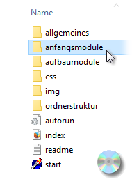 Der Ordner „anfangsmodule“ im Hauptpfad der CD enthält die lizensierten Module der jeweiligen CD. Kopieren Sie diesen Ordner mit + .
