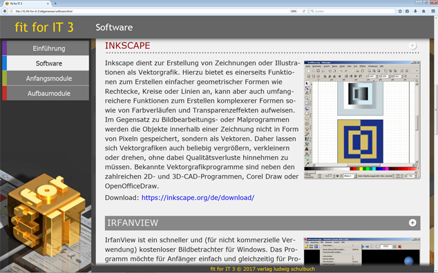 Die fit for IT 3 -Dateien entsprechen den W3C-Standards. Trotzdem können bei älteren Browsern Darstellungsabweichungen auftreten, da diese u.U. nicht HTML5-, bzw. CSS3-fähig sind.